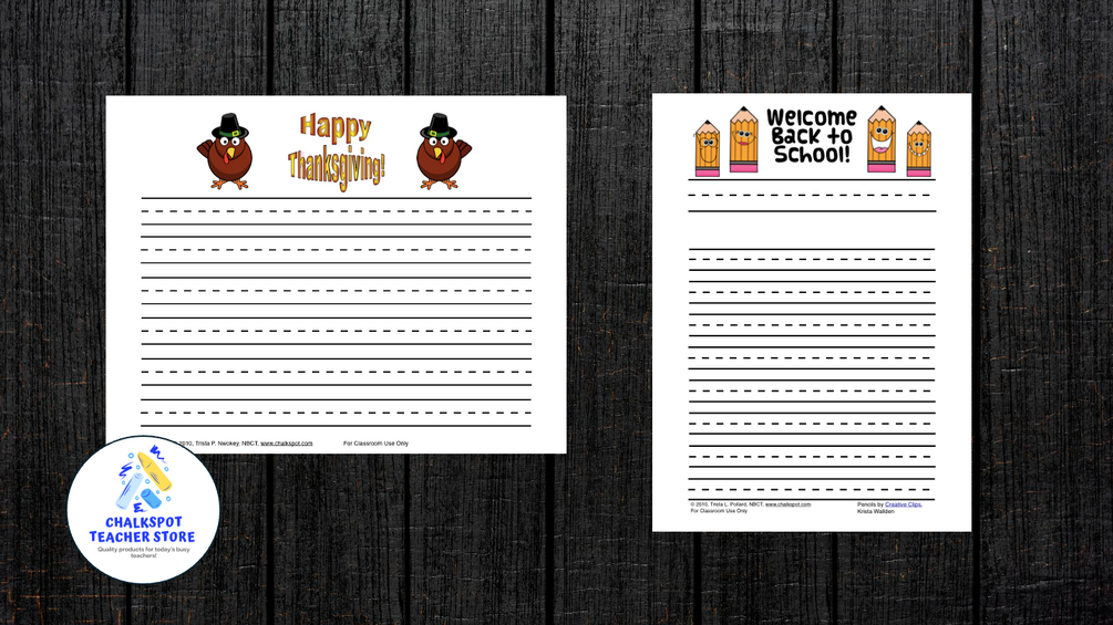 Our Fall Drawing & Writing Paper: Primary Lines  package includes 2 files: one file is Landscape orientation and the other file is Portrait orientation.  Each file includes: