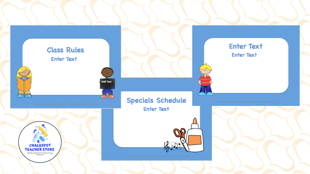 I have included possible titles for text boxes. However, I did not list them here so that you could make the file your own. I hope our PowerPoint Background Templates will become a valuable resource in your classroom.