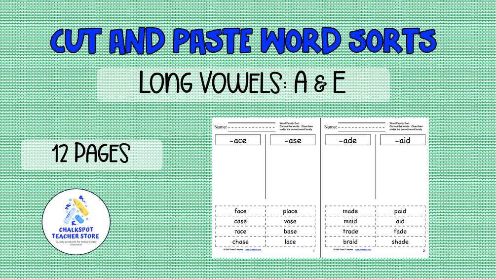 Long Vowel Cut and Paste Word Sort: A & E