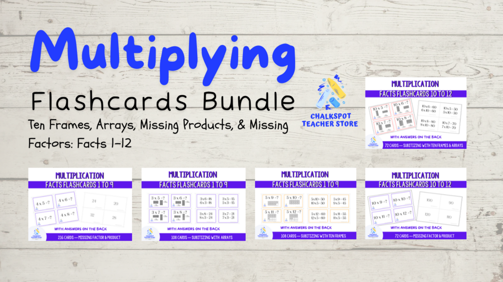 Now you can get our Multiplication Facts 1-12 Flashcards Bundle: Arrays, Factors, & More! You will find five multiplication flashcards packages which will help your students practice their multiplication and problem solving skills.