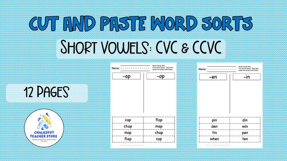 Our  Cut and Paste Word Sorts: Short Vowels CVC & CCVC  activity gives your students hands-on practice with short vowel word families. Word sorts are a great tool for helping your students review the phonograms they have learned in class. These sorts are design-free so your students are not distracted and can focus on the task.