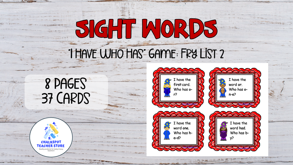 I have always enjoyed using the game "I Have, Who Has..." for math during my Basic Skills sessions. My students also enjoyed playing these games. I decided to make the Fry Sight Words Game: I Have, Who Has", so that my first graders could become “Sight Words Wizards!” This will be a fun way to help my students learn and practice their sight words.