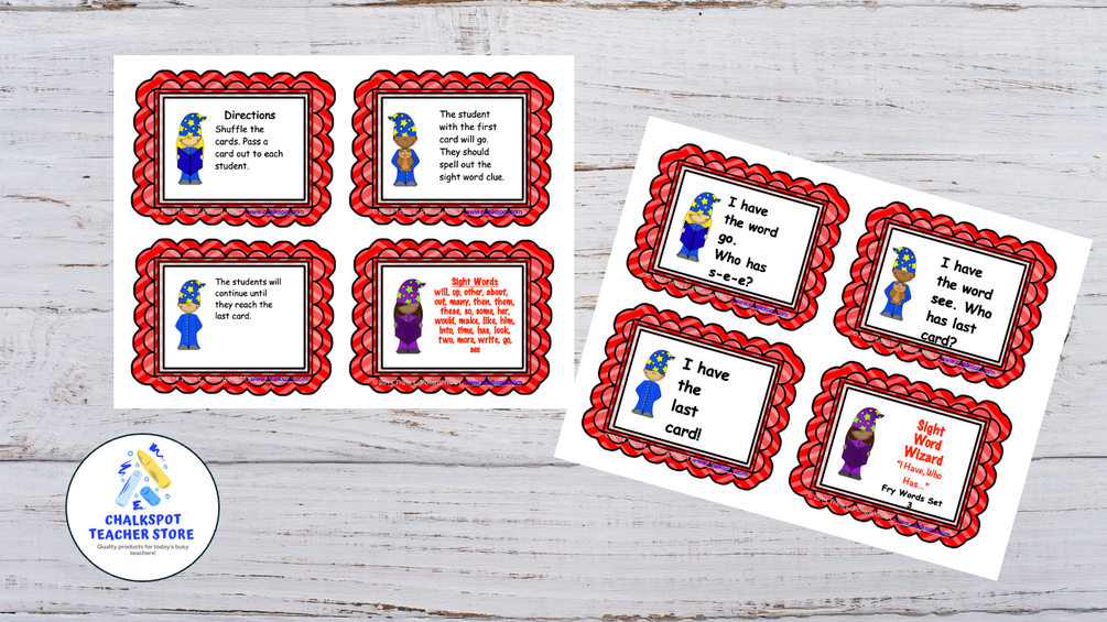 I have always enjoyed using the game "I Have, Who Has..." for math during my Basic Skills sessions. My students also enjoyed playing these games. I decided to make a sight word game, I Have, Who Has" so my first graders could become “Sight Words Wizards!” This will be a fun way to help my students learn and practice their sight words.