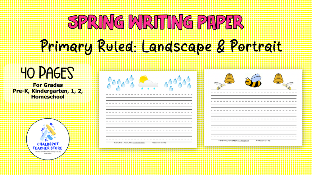 The next file, Spring Primary Writing Paper (Portrait Orientation), includes: