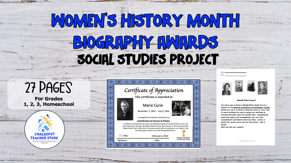 I hope your students enjoy working on their Women's History Biography Awards projects!